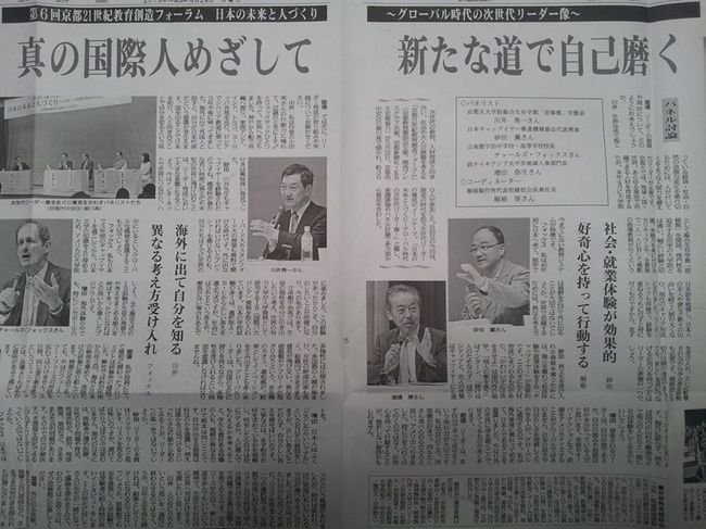 "グローバル時代の次世代リーダー像"をテーマにした 『京都21世紀教育創造フォーラム』の採録紙面が京都新聞に掲載。パネリスト4人中3人がギャップイヤー経験者とわかる!![]()