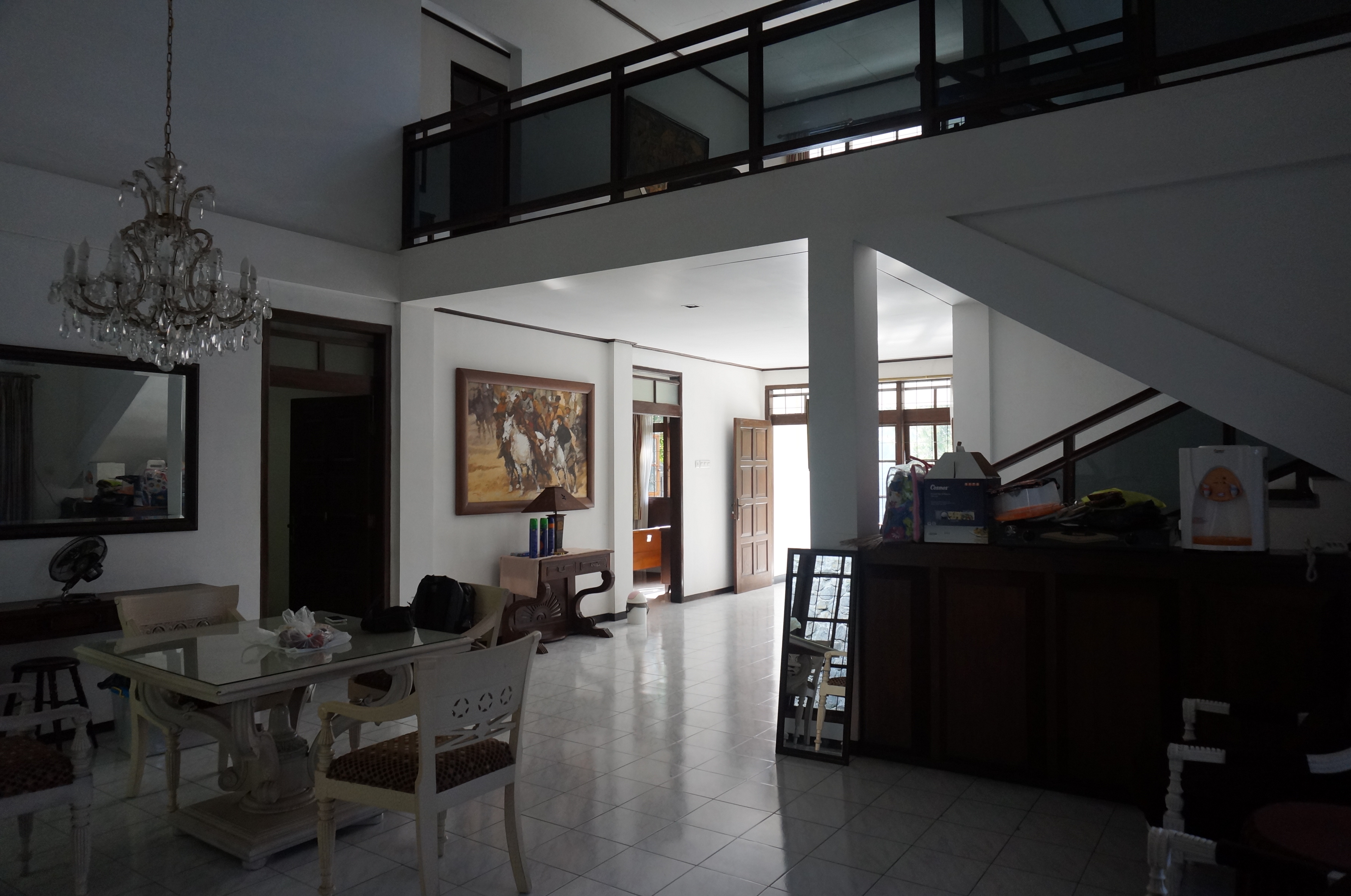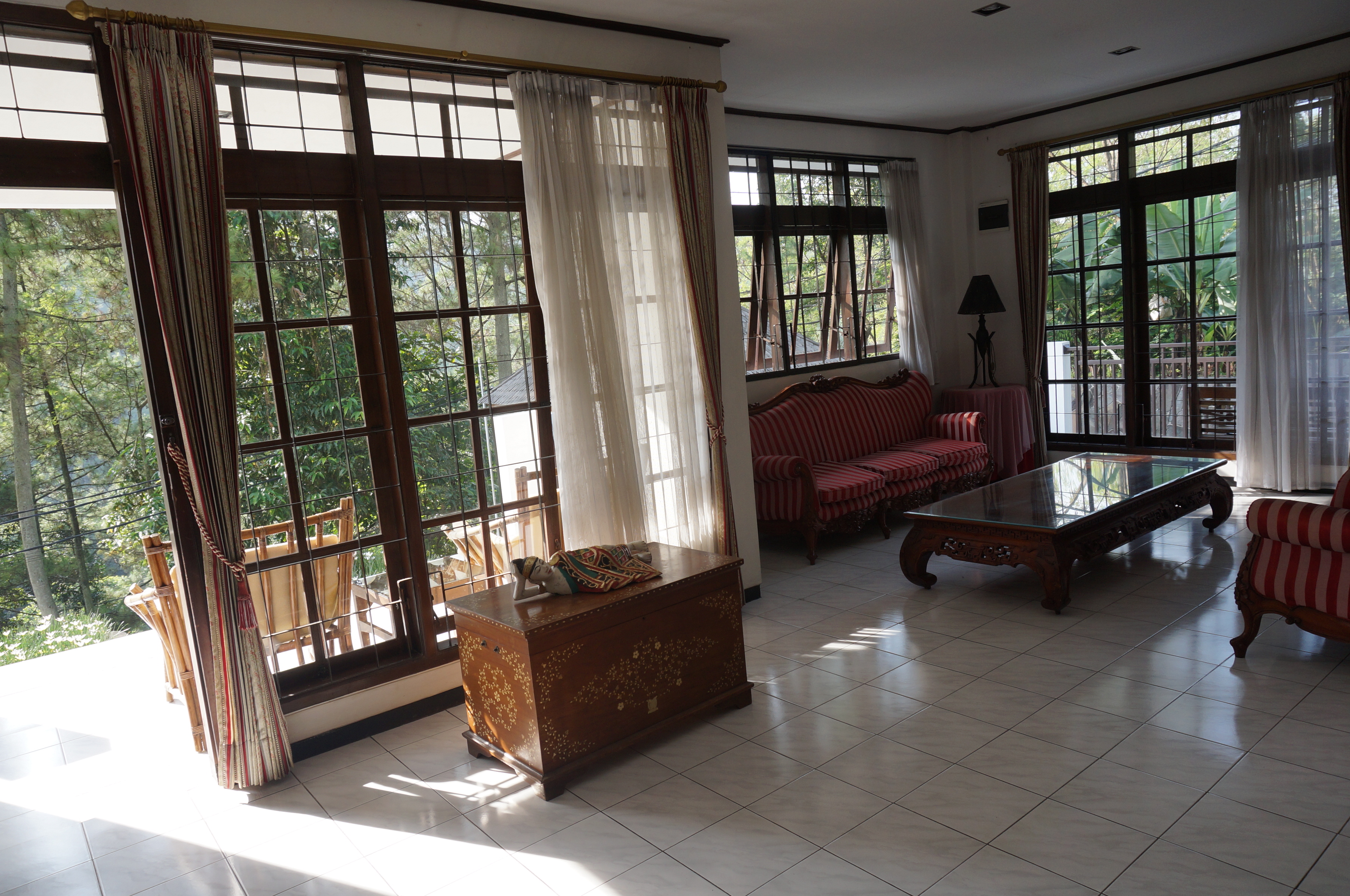 場所は、バンドゥンの市街部からやや外れた丘の上にあり、大学教授たちが集中的に住むエリアです。バンドゥン市街地に比べても非常に涼しく、家の雰囲気はまるでヴィラ。インドネシアや新興国特有の喧騒感を感じることもなく、大変静かです。夜などはくしゃみの音が周囲に響き渡るぐらいに静かです。家の前の木に、リスがたくさんいたり、サルの群れが通りかかったり、自然にも溢れ、何とも平和でのどかな環境です。