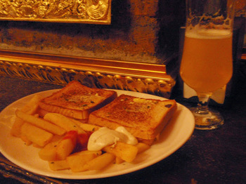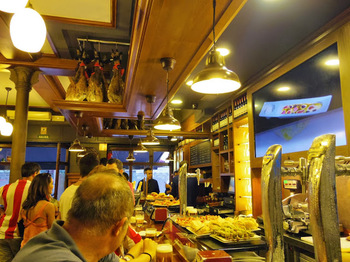 この町のBarはお酒を1杯頼めば、タパスが必ずついてくる。そのタパスもハンバーガー&ポテトとかボリューム満点なもの。2,3杯飲めばお腹いっぱいになるぐらい。